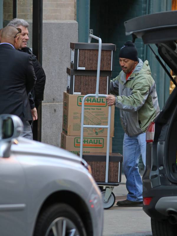 53-летний американский рокер Джон Бон Джови лично занимался выносом и погрузкой вещей из своих апартаментов в Нью-Йорке.